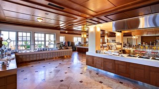 The à la carte restaurant Dionysos offers an authentic taste of Crete. Ideally located near the main bar, the restaurant overlooks the pool and the Aegean Sea. Daily vegetarian menu and special diet dishes are available.