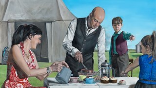 Scott is a painter who specialises in figure compositions portraits and still life. He creates narrative images that are based on modern day themes and events. Like many of the artists who have had an influence on his work, he has a great interest in “capturing a moment in time”. Composition, realism and strong draughtsmanship are of equal importance to him as is the narrative involved in creating his work. His main influences are – Velazquez, Titian, La Tour, Caravaggio, Hopper, Bacon and Freud.