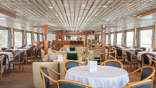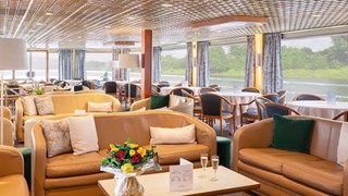 The upper deck restaurant serves all meals in a refined setting, with large windows offering panoramic views of the passing scenery. Also on the upper deck, the lounge and bar features a dance floor, perfect for evening entertainment and socialising. On the sun deck, comfortable loungers and a large shaded area provide the ideal spot to unwind and admire the surrounding landscapes in complete comfort.